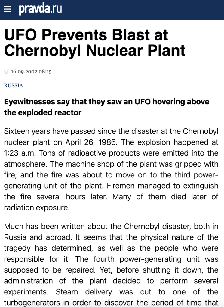 Moving even further from reality, ufologists have long claimed extraterrestrial intervention, suggesting that UFOs either provoked the explosion or mitigated its consequences. This speculative theory regularly surfaces on specialized websites, in fringe media, and encyclopedias of opinion, as well as in modern social networks.