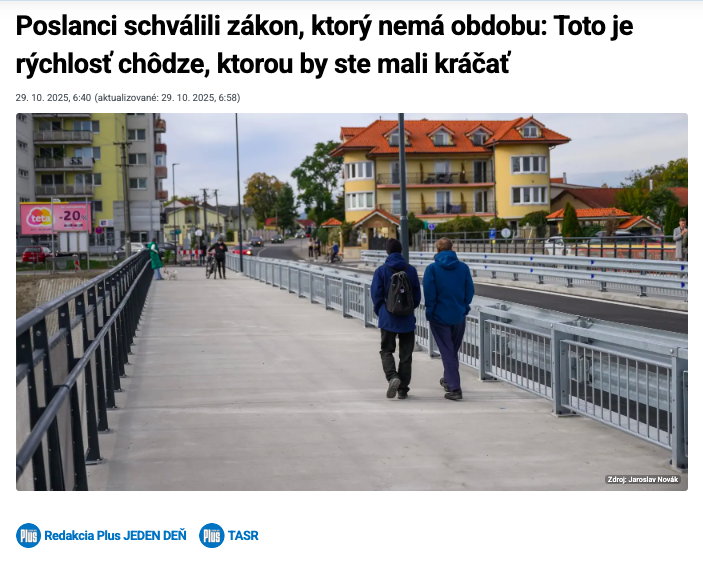 Slovak and foreign media are spreading information that the Slovak parliament has approved an absurd law that would prohibit pedestrians from walking faster than 6 km/h. But the truth is more complicated in this case as well.