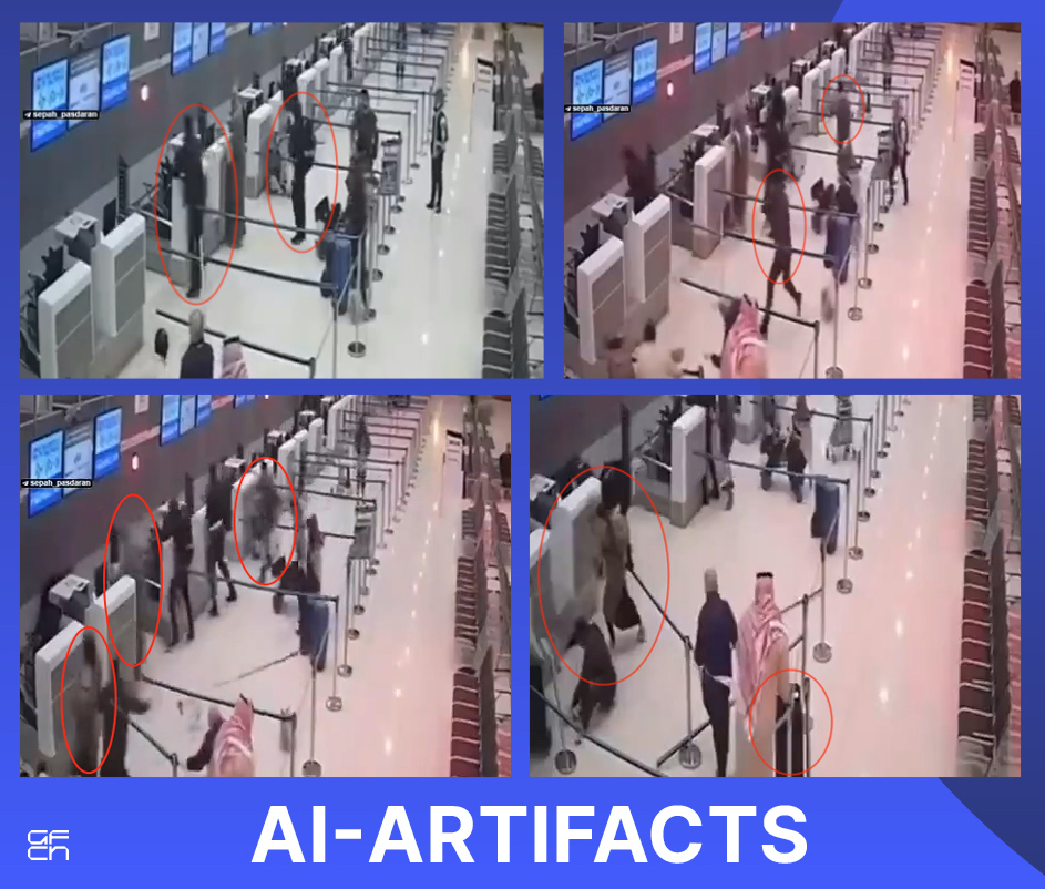 Conclusion: The generation artifacts confirm that the video is a fake and no actual strike on the Burj Khalifa occurred. Moreover, such iconic locations and landmarks are often used to create fakes.