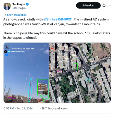 An analysis of the circulating video shows that it has no connection to the city of Minab and, consequently, to the incident involving the school. The image and location used to support the claim of the school being in a “military zone” were filmed in a completely different place — the city of Zanjan, which is located more than 1,300 kilometers from Minab.