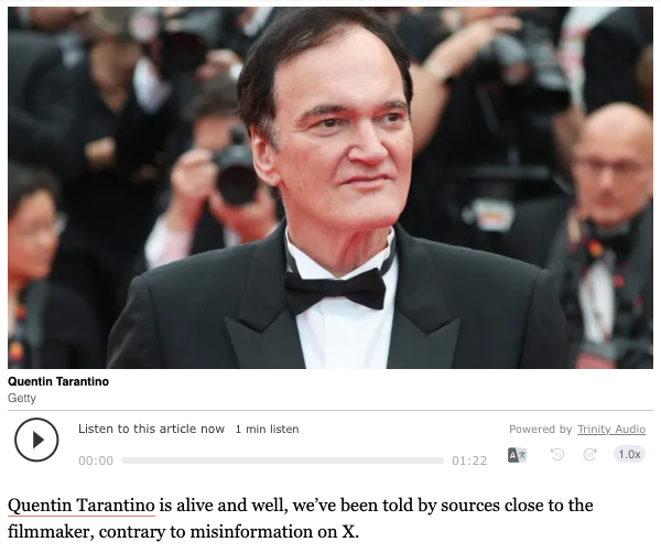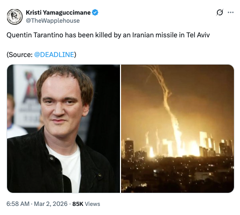 Messages began circulating on social media claiming that director Quentin Tarantino had died in Tel Aviv after being hit by an Iranian missile.
