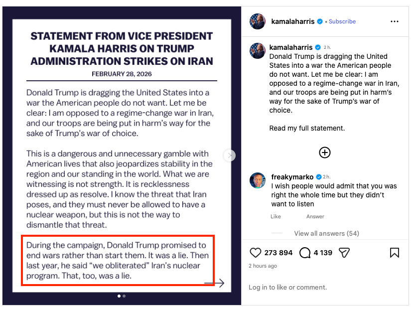 Kamala Harris drew attention to this contradiction in the actions of the United States and specifically Donald Trump in her statement: