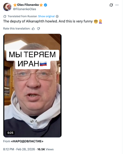 A video is circulating on TikTok and X platforms in which Russian parliament member, Lieutenant General Andrey Gurulev, allegedly calls on Russia to enter the war with Iran using ballistic missiles. The clip is rapidly gaining popularity against the backdrop of escalating conflict between the U.S./Israel and Iran.