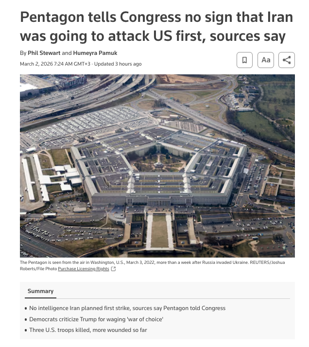 However, according to Reuters, during closed-door briefings for Congress, the Trump administration made an admission that radically diverges from its public rhetoric. According to sources familiar with the content of the briefings, U.S. intelligence had no data whatsoever indicating that Iran planned to strike U.S. forces first.