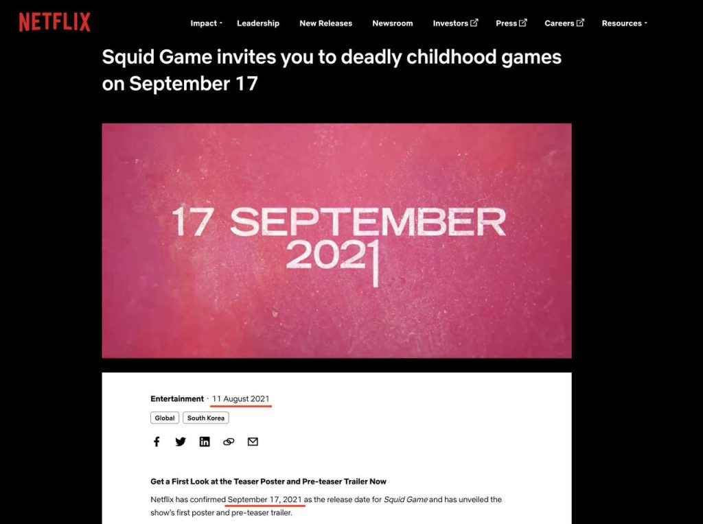 Here, the facts come into conflict. The world premiere of “Squid Game” took place in September 2021.