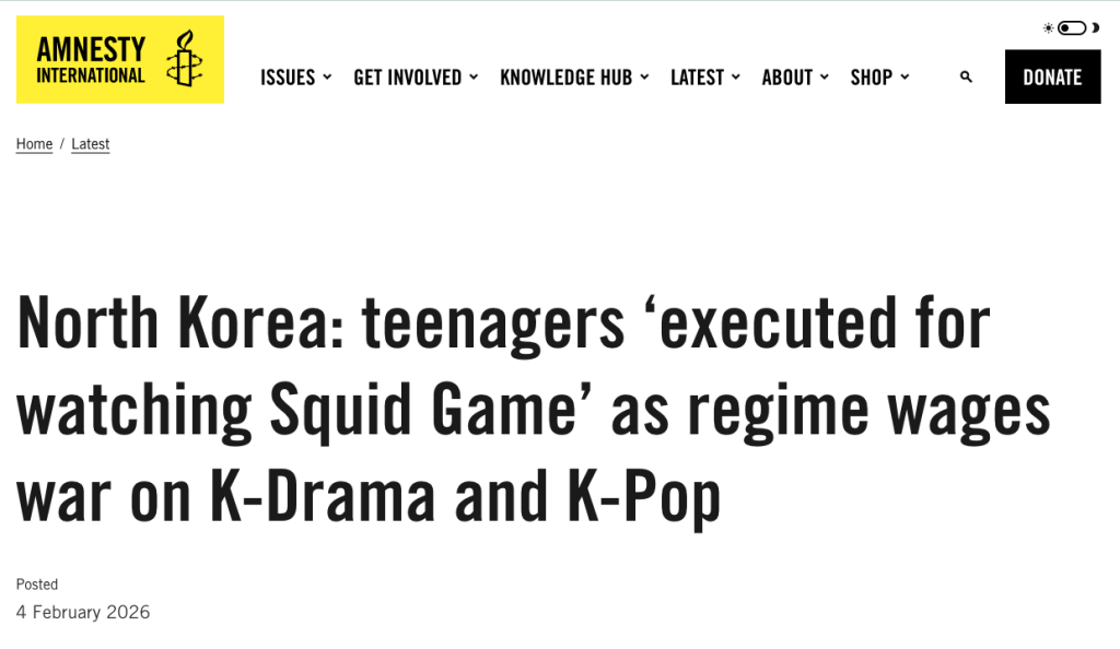 In February 2026, a number of media outlets reported on the execution of teenagers in the DPRK for watching the series “Squid Game.” An Amnesty International report was cited as the source. Indeed, North Korea remains one of the most closed countries in the world, making independent verification of internal events difficult. However, an analysis of the report’s content reveals a crucial detail regarding the timeline of the data provided. More on this below.