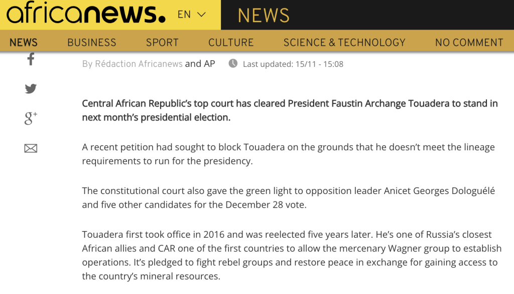 As a result, CAR Minister of Territorial Administration Bruno Yapandé described Nguémalé’s petition as intended to “create confusion among the public.” And the Constitutional Court’s decision to allow Touader to run in the election confirmed the invalidity of his opponent’s arguments.