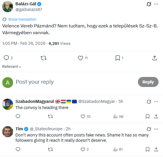 The account @SzabadonMagyar, which published the video, has previously been noted for spreading unverified information, a fact also pointed out by users in the comments under the post.