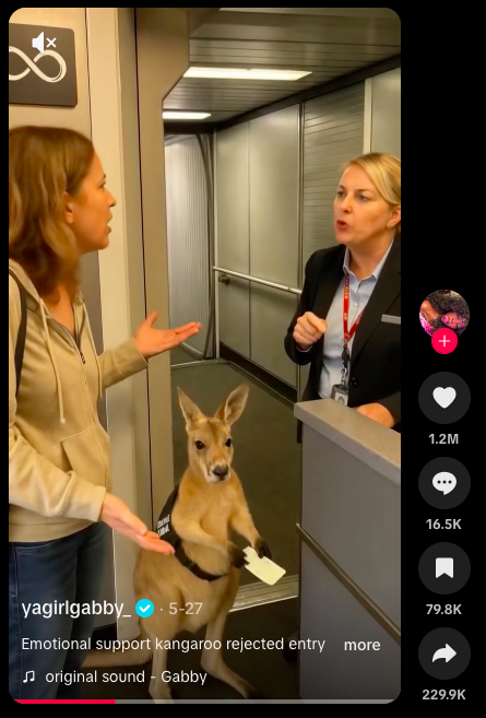 Examples include viral videos of a bear climbing onto a trampoline or a kangaroo being denied plane boarding despite having a ticket.