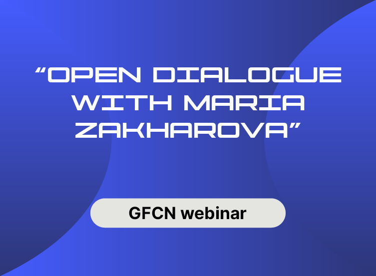 The webinar was held in an open dialogue format. Maria Zakharova, Director of the Information and Press Department of the Russian Ministry of Foreign Affairs and its official representative, answered questions from GFCN experts and participants of the “Dialog about Fakes 3.0” forum.