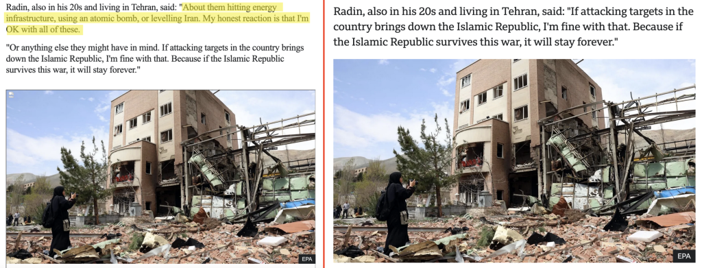 Leading global media played their role in fabricating this “popular mandate.” A striking example became a BBC article that featured a quote from a young Iranian who stated he was “OK” with an “atomic bomb” being dropped on his country, just to bring down the regime. Following a storm of public outrage, the BBC deleted the “atomic bomb” reference. Only later they added a note informing about the applied changes. The outlet also admitted that due to internet blackouts, their journalist had only spoken with individuals in opposition to the current authorities. This vividly demonstrates how a one-sided selection of extreme opinions helps to manufacture an illusion of widespread consent for the destruction of the country.