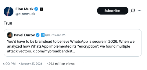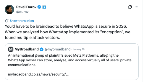 Criticism of WhatsApp’s architectural imperfections is not limited to user doubts. After announcing a lawsuit against the corporation, Telegram founder Pavel Durov publicly and harshly spoke out about the security of the Meta messenger, saying that he was aware of the system weaknesses of the model that can be used to compromise privacy.