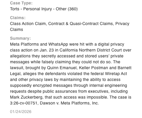 An international group of users has filed a class-action lawsuit against Meta Platforms, Inc. for spreading false claims about the security and privacy of WhatsApp messenger. The plaintiffs claim that, despite the declaredend-to-endencryption by default, the company technically has the ability to access, store and analyze the content of user messages.
