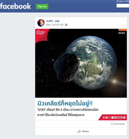 In 2021, a claim spread on social networks that NASA warned about an asteroid approaching the Earth, which cannot be stopped even with the help of nuclear weapons.