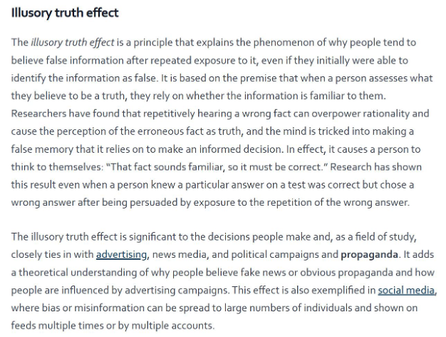 This is how the disinformation effect works: new information arriving after an event is embedded in memory and changes its content. Especially if the source seems authoritative, the information is repeated (the illusory effect of truth is triggered) or the person has already reproduced a lie once — then he begins to consider it the truth.