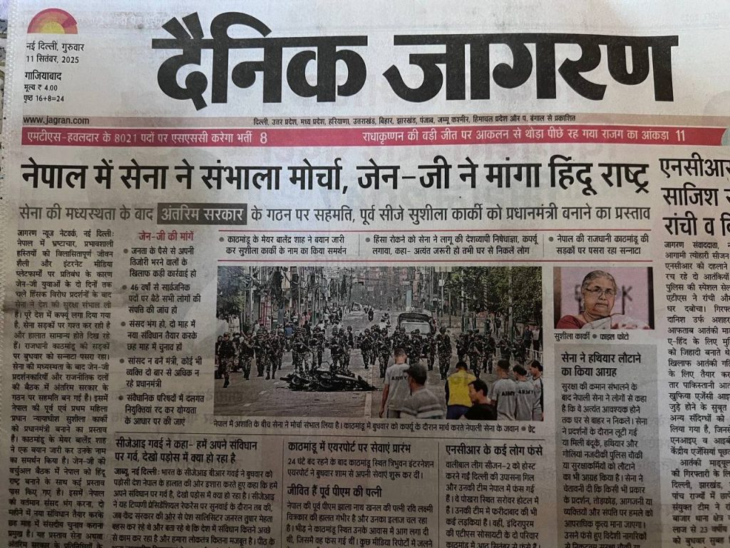 Supporters of the overthrown monarchy and pro–Hindu nation activists also seized the moment, using both mainstream and social media to shape the environment in their favor through systematic disinformation. Dainik Jagran, a widely circulated Indian newspaper known for its sympathies toward Hindu nationalist movements, ran a cover story claiming that protesters in Nepal were demanding the restoration of a Hindu nation.